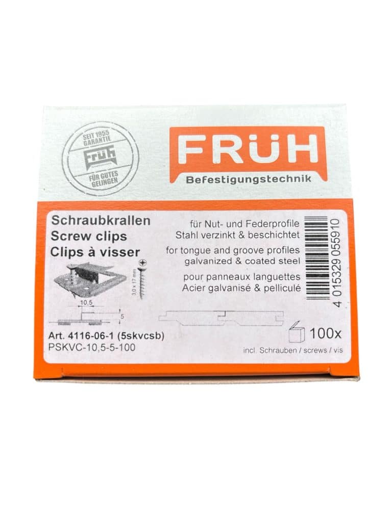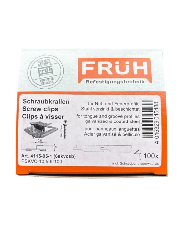 De clips worden achter de veer geplaatst en vastgezet met een schroef of spijker in het achterhout. De volgende plank schuif je eenvoudig in de groef, waardoor de bevestiging netjes wordt weggewerkt. Ideaal voor binnenbetimmering van hout, zoals grenen, vuren of eiken veer- en groef planken.