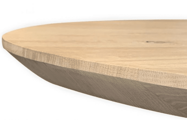 Dit Deens ovale tafelblad is voorzien van een facet (verjongde) rand. Deze afwerking geeft het blad een verfijnde, slanke uitstraling, terwijl de robuuste kern behouden blijft. Het resultaat is een tafelblad dat zowel modern als tijdloos oogt.