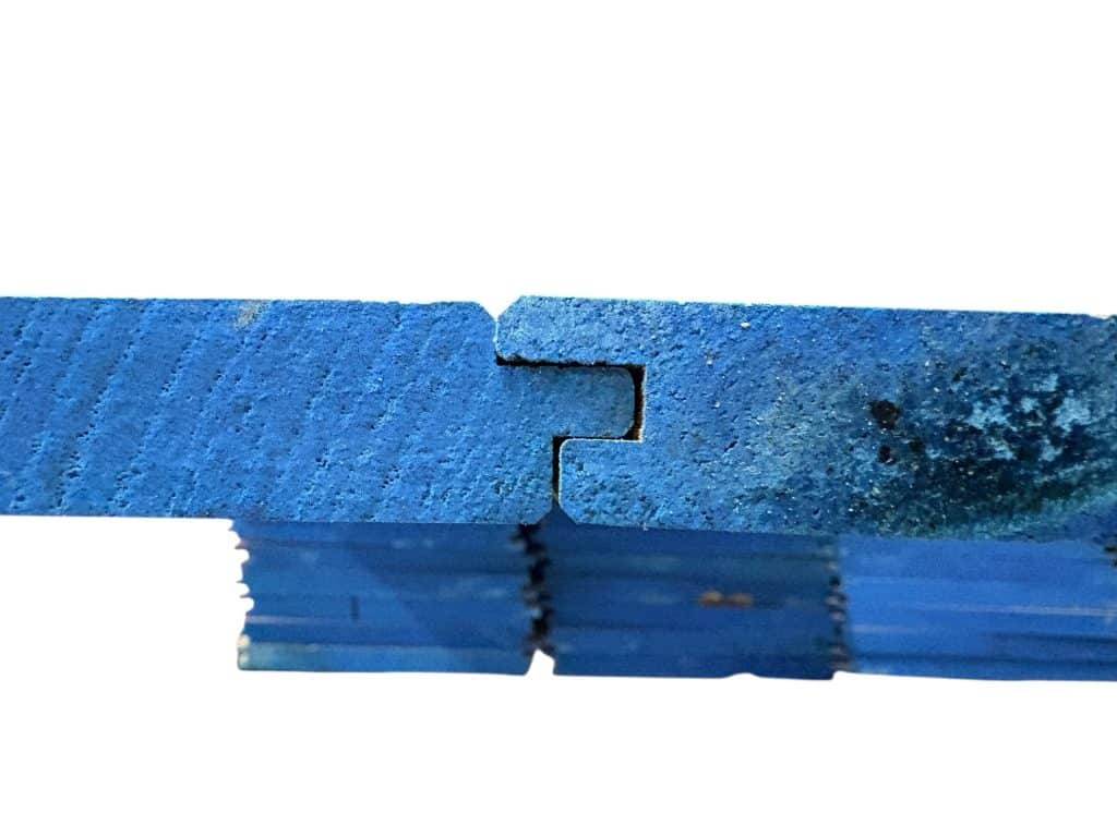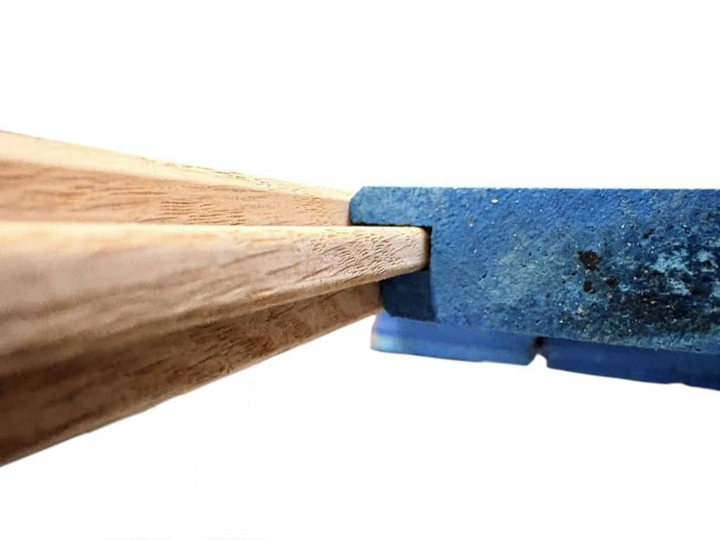 De eiken vellingdeel blinde bevestiging met veer en groef zijn extra breed gefreesd, zodat er eenvoudig een RVS gevelschroef A4 in de veer kan worden geschroefd. Vervolgens schuift de volgende plank met de groef naadloos over de schroefverbinding heen.