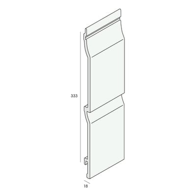 Novicell gevelpanelen zijn opgebouwd uit een massieve kern van duurzaam hardschuim PVC met een gecoextrudeerde toplaag, voorzien van een houtnerf structuur. Het rabatdeel is herkenbaar aan de traditionele ronde uitsparing. De dubbele uitvoering zorgt ervoor dat projecten sneller afgewerkt kunnen worden. De grove houtnerf kenmerkt zich door een karakteristieke uitstraling. Zeer fraai bij projecten waar een houtuitstraling nadrukkelijk aanwezig mag zijn. Kenmerken zijn de lange wijd uitstaande nerven met een rustig draadverloop. De panelen hebben een matte uitstraling. Ook van een afstand is deze houtnerf goed zichtbaar en blijft het ‘plank effect’ aanwezig. Gevelbekleding van Novicell is bijzonder fraai door de natuurgetrouwe houtstructuur en wordt daarom vaak toegepast als kunststof chalet bekleding.