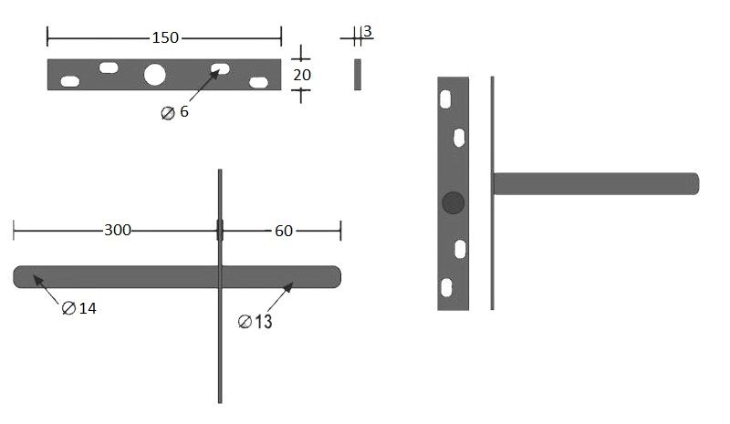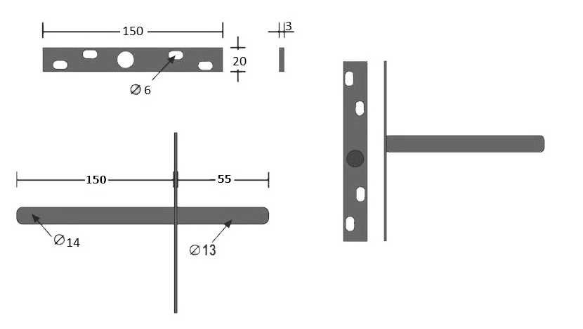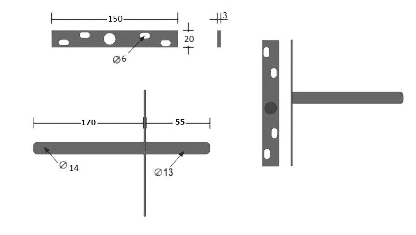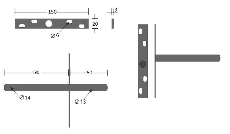 - Dikte bevestigingsplaat: 3mm